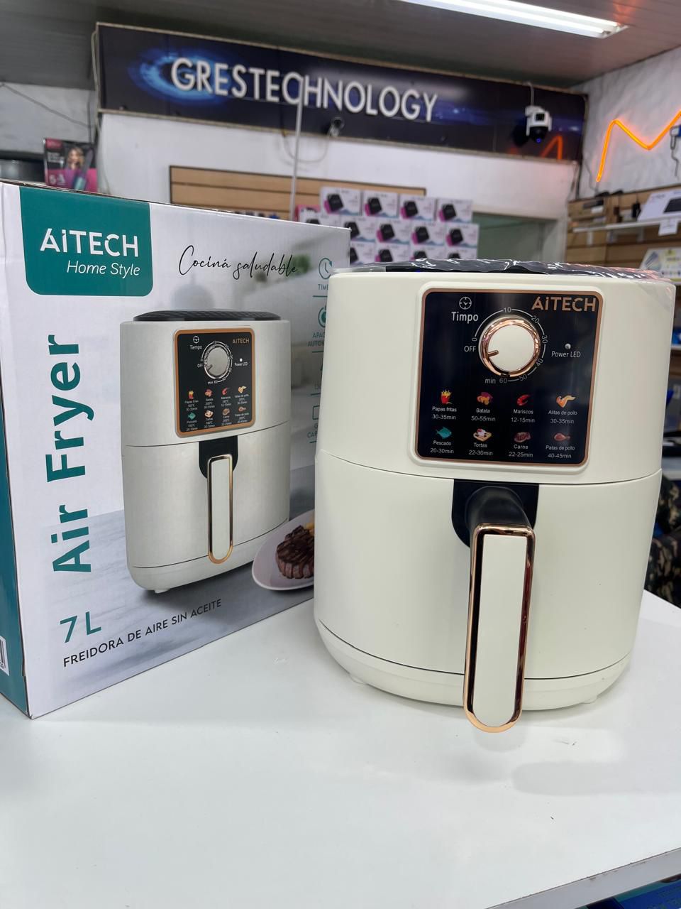 La Air Fryer AiTECH color blanco hueso es ideal para preparar comidas más saludables gracias a su cocción sin aceite o con mínima cantidad. Permite freír, hornear y asar logrando resultados crocantes por fuera y tiernos por dentro.