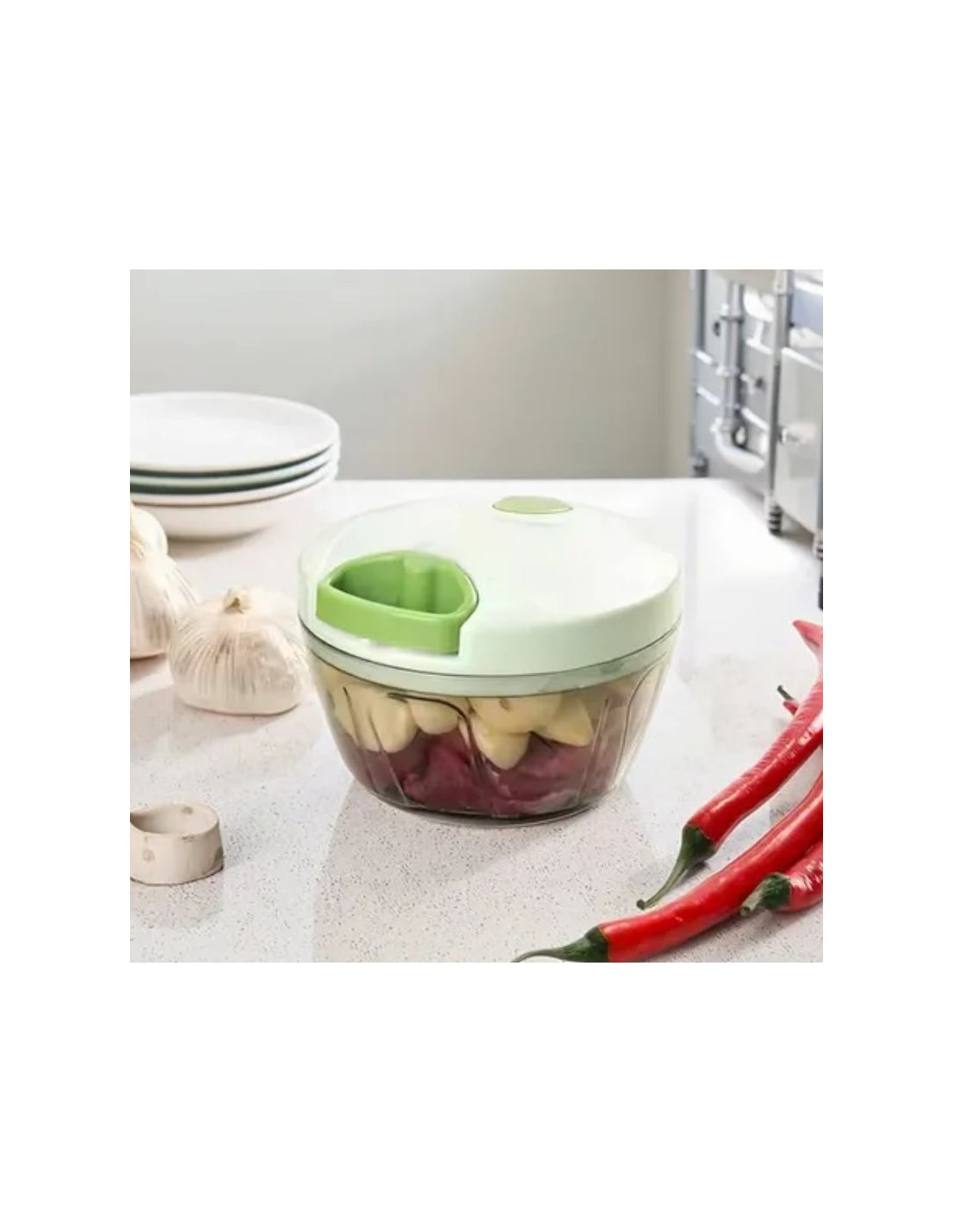El Picador Manual Compacto de 400 ml es una herramienta práctica y eficiente para triturar, picar y cortar verduras de forma rápida y sin electricidad. Ideal para el uso diario en la cocina, permite preparar cebolla, ajo, zanahoria, tomate, hierbas, frutos secos y más, con resultados uniformes y controlados.